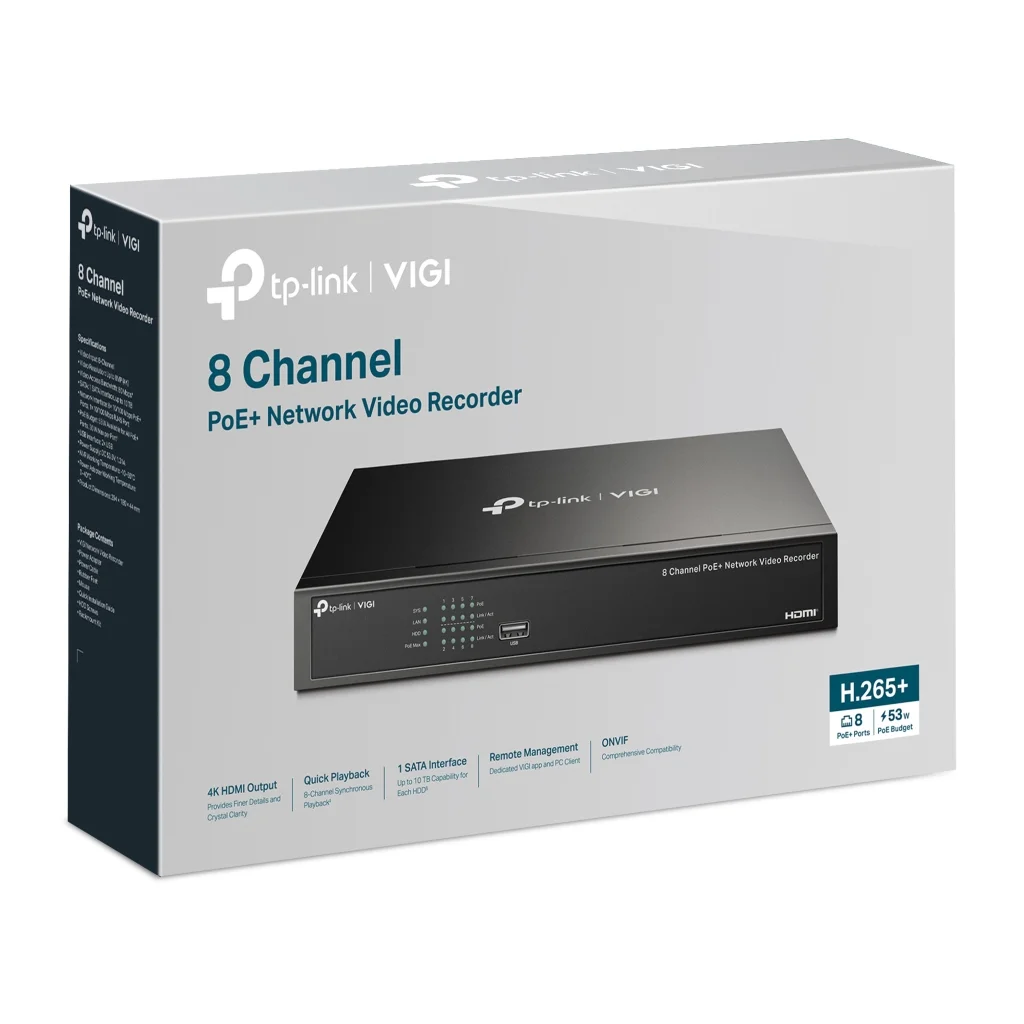 TP-Link VIGI NVR1008H-8MP – 8-Kanal PoE+ Netzwerk-Videorekorder