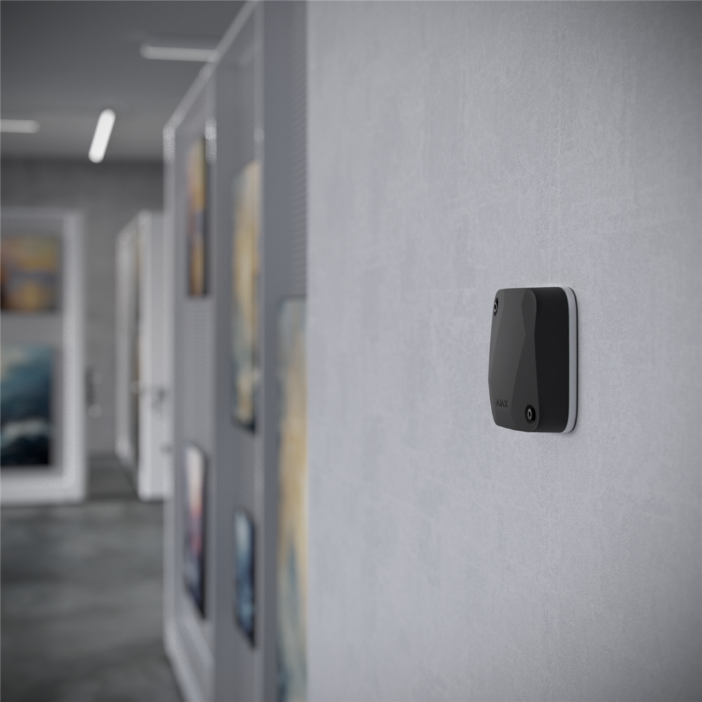 Das kompakte und widerstandsfähige schwarze Gehäuse ermöglicht sowohl sichtbare als auch dezente Montage. Durch das geringe Gewicht und die optimierte Kontaktfläche lässt sich der Melder auf Wänden, Stahltüren, Tresoren oder massiven Strukturen optimal positionieren. Die Einrichtung erfolgt wie bei allen Fibra-Geräten über die Ajax PRO App und unterstützt komplexe Systemarchitekturen mit langen Leitungslängen.