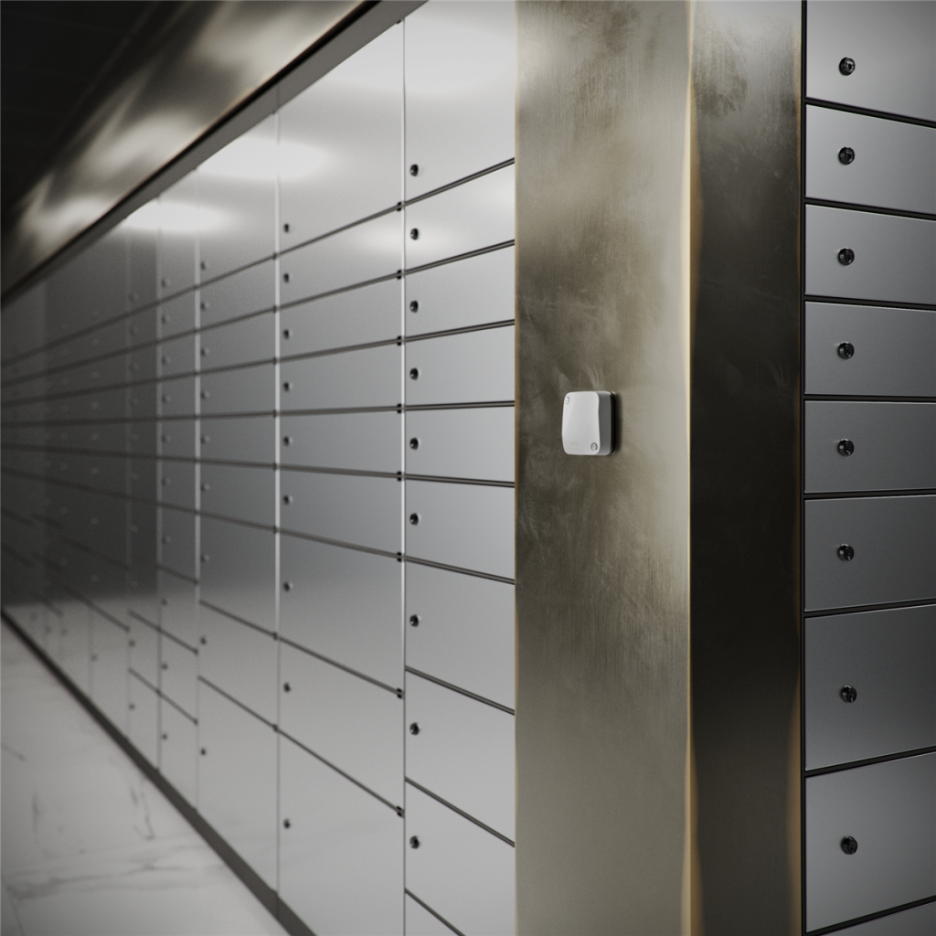 Die weiße Gehäuseausführung fügt sich besonders gut in Büros, Technikräume, moderne Innenarchitektur und helle Sicherheitsbereiche ein. Durch die kompakte Bauweise lässt sich der Melder an Wänden, Tresorkörpern, metallischen Oberflächen oder massiven Strukturen optimal platzieren.
