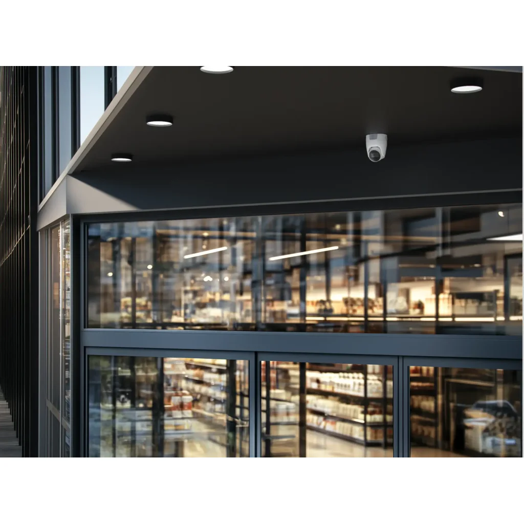 - Ja. Als Turret-/Eyeball‑Kamera ist sie ideal für Decken, Unterzüge und Überdachungen, da sich der Blickwinkel flexibel einstellen lässt.